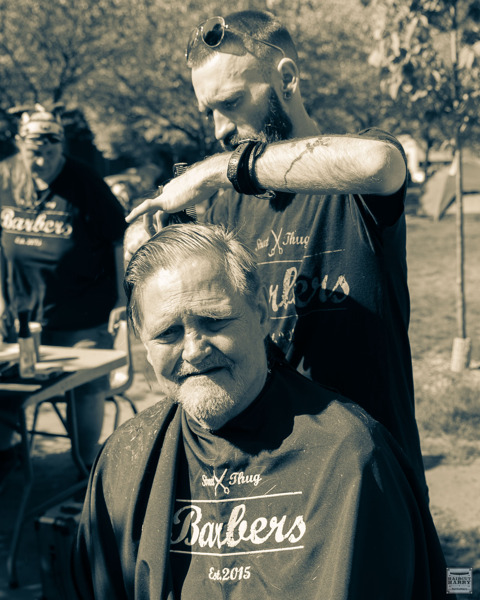 The Street Thug Barber core members are Cameron, Josh, and Farzad Salehi who is also known as “The Happy Barber.” The Street Thug Barbers have volunteered their time every Sunday in Oppenheimer Park located in Vancouver’s Downtown Eastside. It is an area with a significant homeless and low-income population. Cameron described their work in Oppenheimer Park much like the relationship they develop with the customers they see in the barbershop. It’s about connecting with people and being accepted by the community they serve.