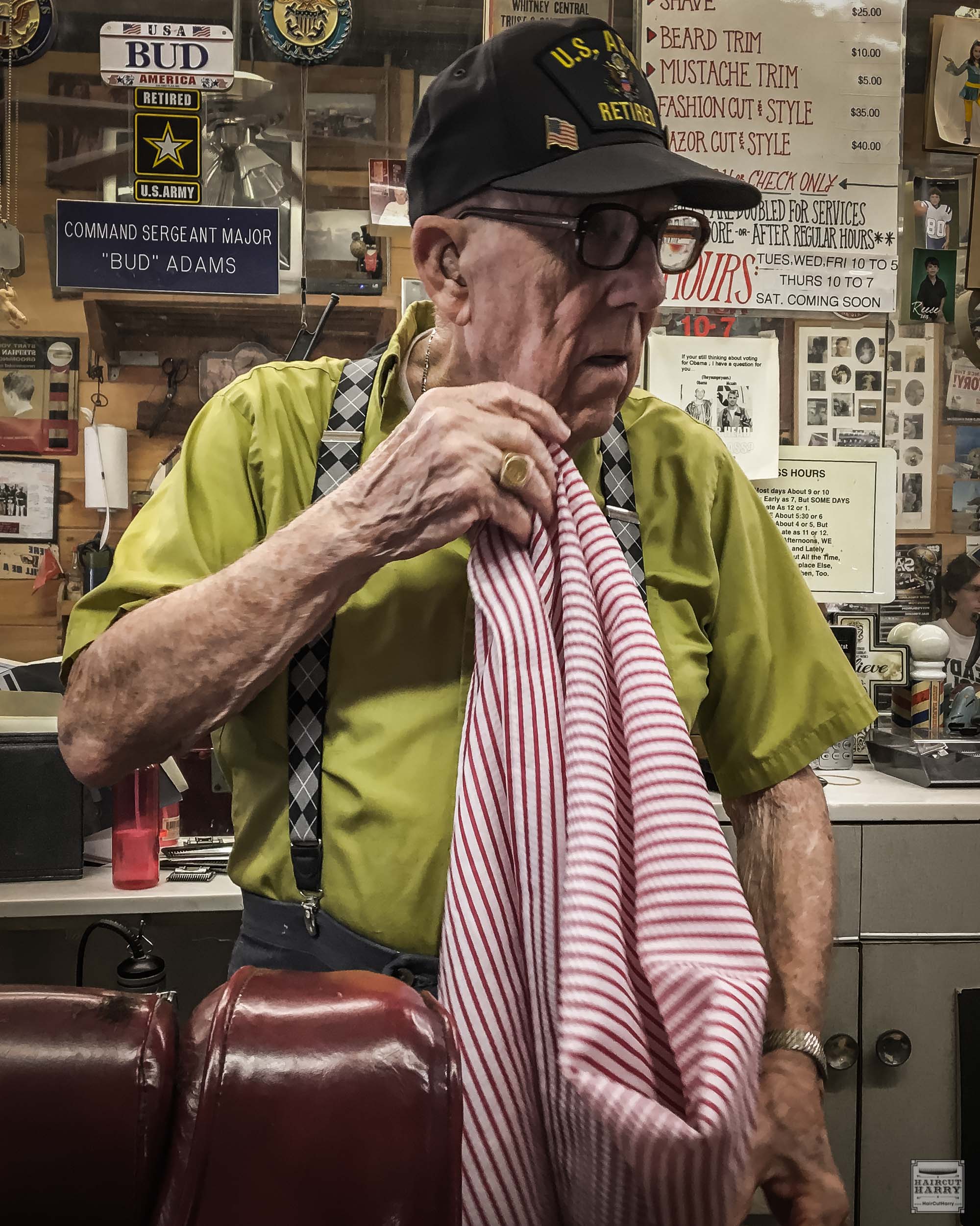 “It’s a pleasure to cut hair and I do a lot of talking! . . . Customers become after they’re here a while become friends.” –Bud Adams
