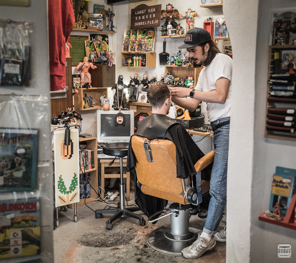 A barber shop with a retro toy slash gaming twist. Ruben Og Bobby has been at this location for three years. It’s a cool place to hang out and dive into the nostalgia of your youth!